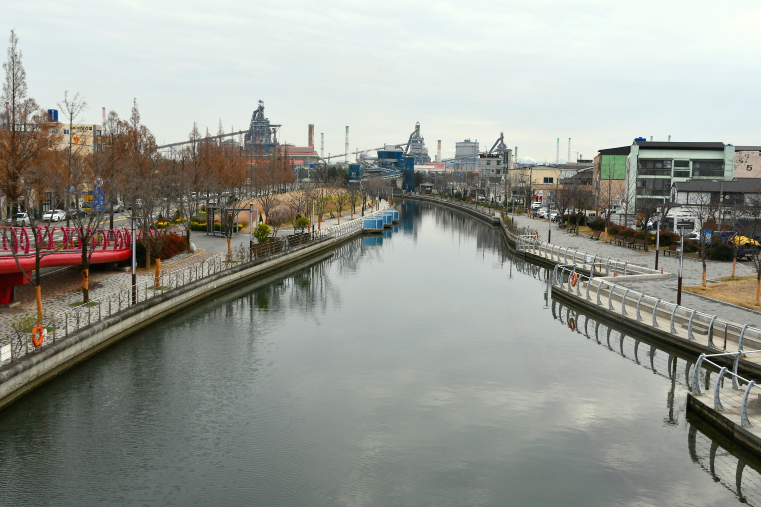 옛날 포항제철을 건설하려고 일대의 땅을 매립하면서 원래 흐르던 물길을 없애고 그 자리에 동빈내항이 생겼습니다.