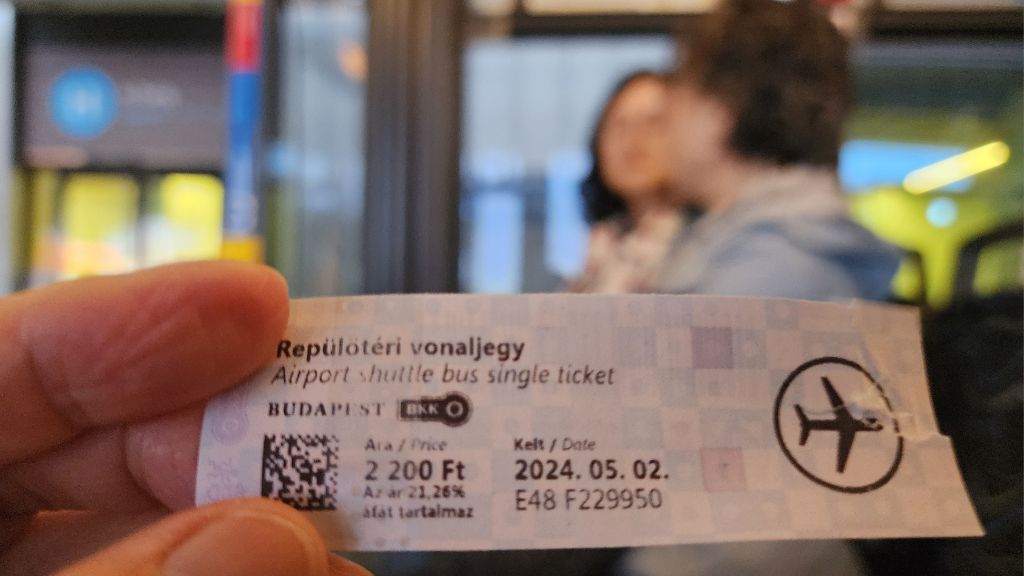 자동발매기에서 공항버스 티켓(2200포린트)까지