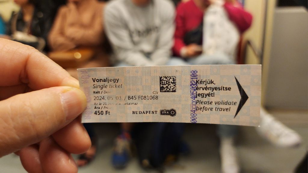 지하철 1회권(450포린트)을 두 장 사서 이용했어요.
