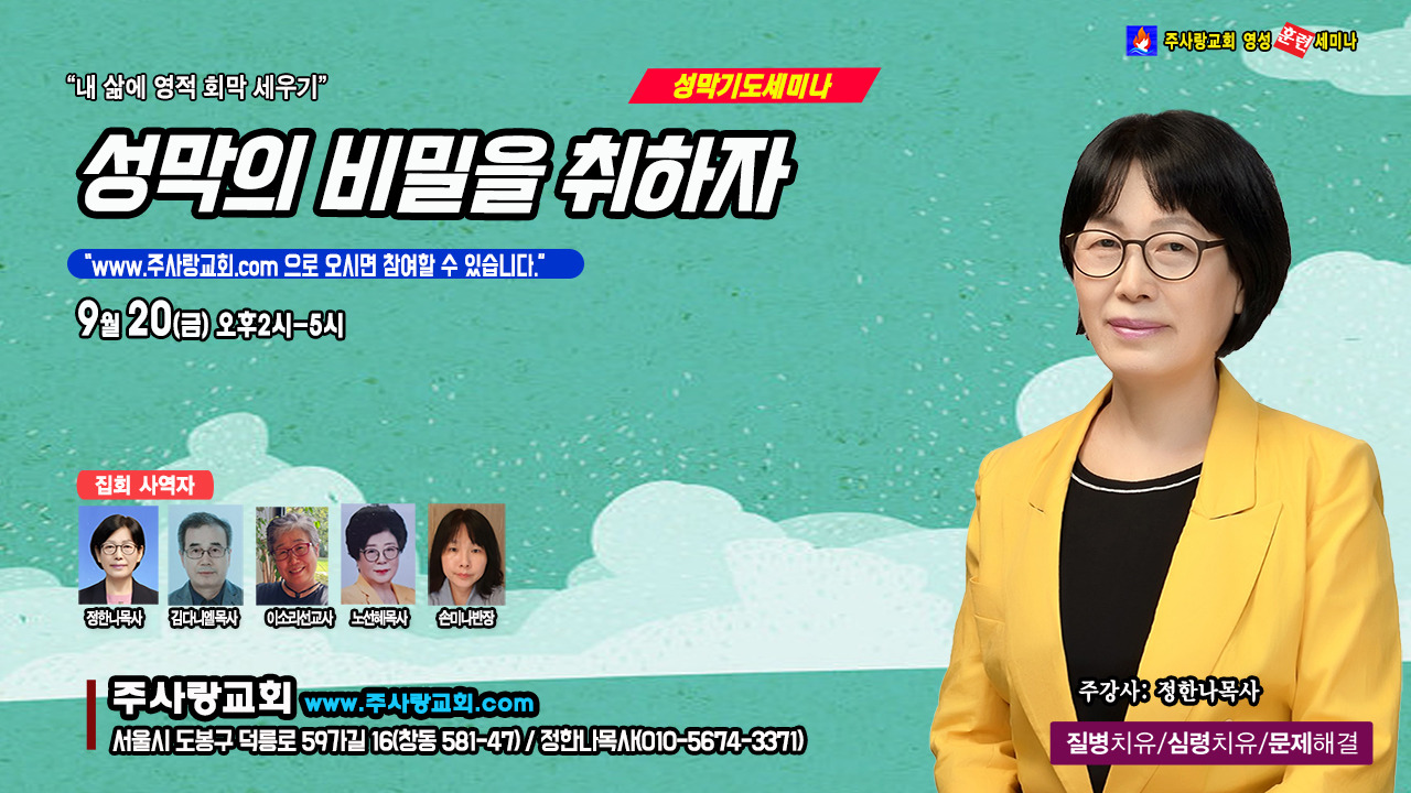 (9/20) '성막기도 세미나' (도봉주사랑교회) 작성자데이빗 목사|작성시간24.08.30|조회수102 목록 댓글 1 글자크기 작게가 글자크기 크게가 다음검색 현재 게시글 추가 기능 열기 북마크 공유하기 신고 센터로 신고 댓글 댓글 1 댓글쓰기 답글쓰기 댓글 리스트 작성자[도봉주사랑교회]정한나목사 | 작성시간 24.09.03 할렐루야~♡♡♡9월 세미나 허락하신 주님께 감사합니다데이빗목사님 감사합니다♡♡♡ 댓글 전체보기