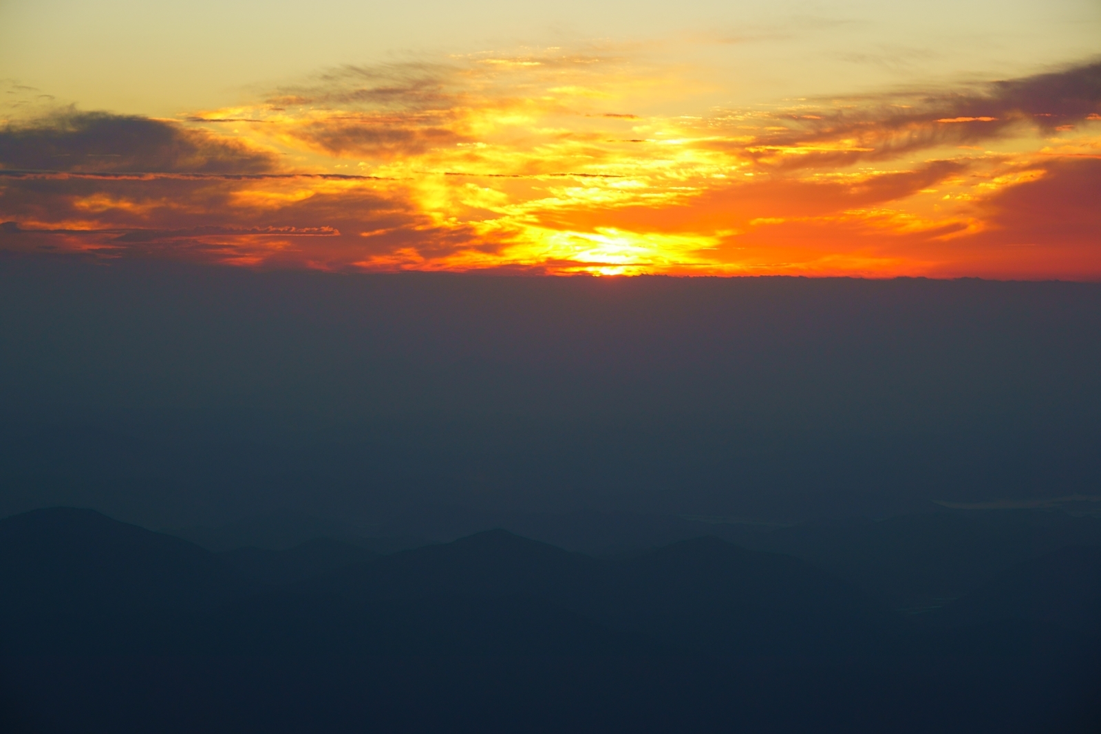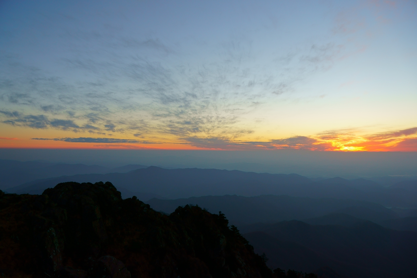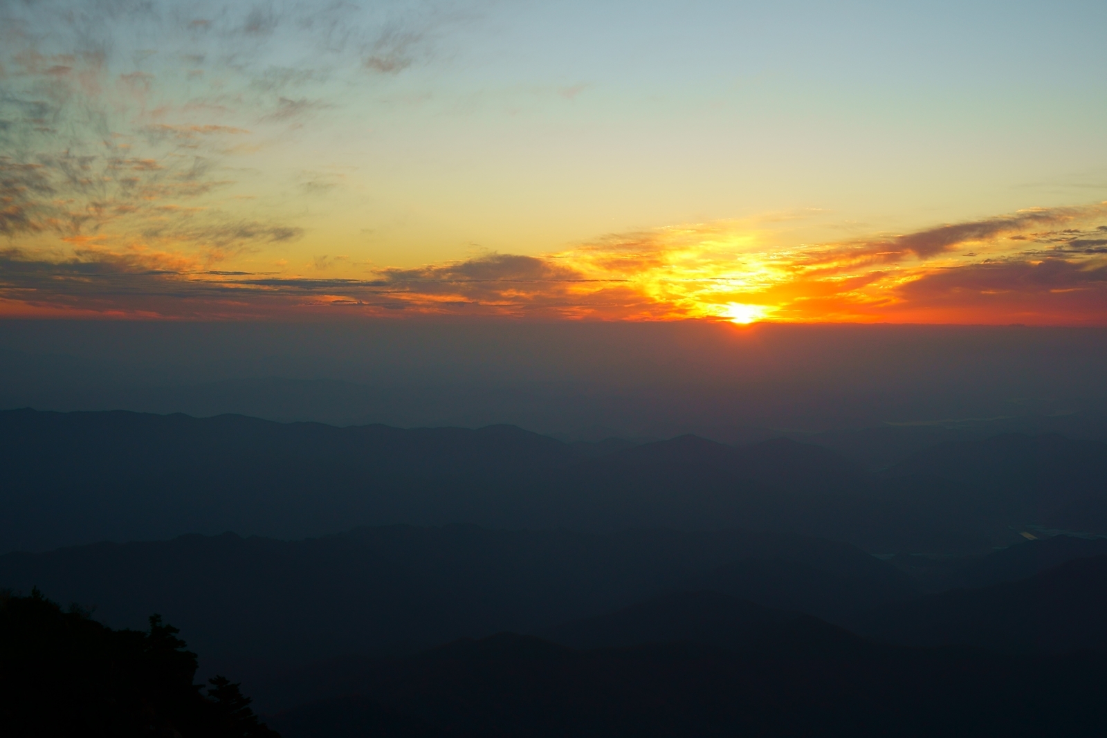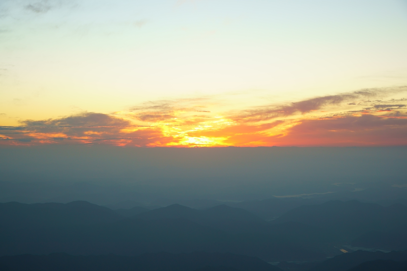 습도도 높지 않고 온도도 높아서 운해를 기대하기 어려운 상황이라 쨍한 일출을 보지 않을까 싶었는데 살짝 구름이 있어 쨍한 일출장면은 아니었습니다.