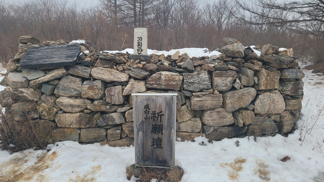 함백산 이 여기로 ~ 바위 아래로 정상석 이전(공사 미완료)