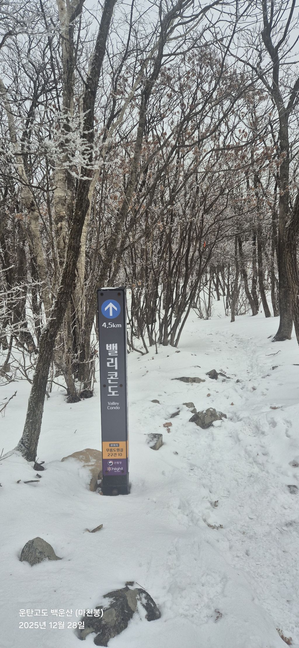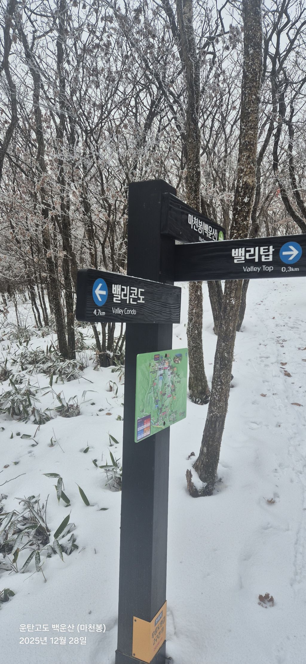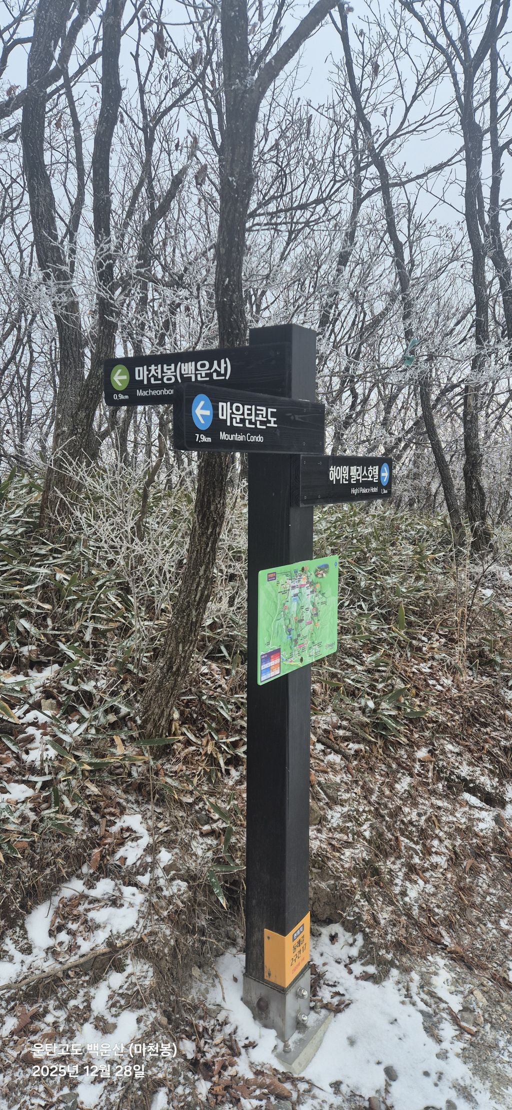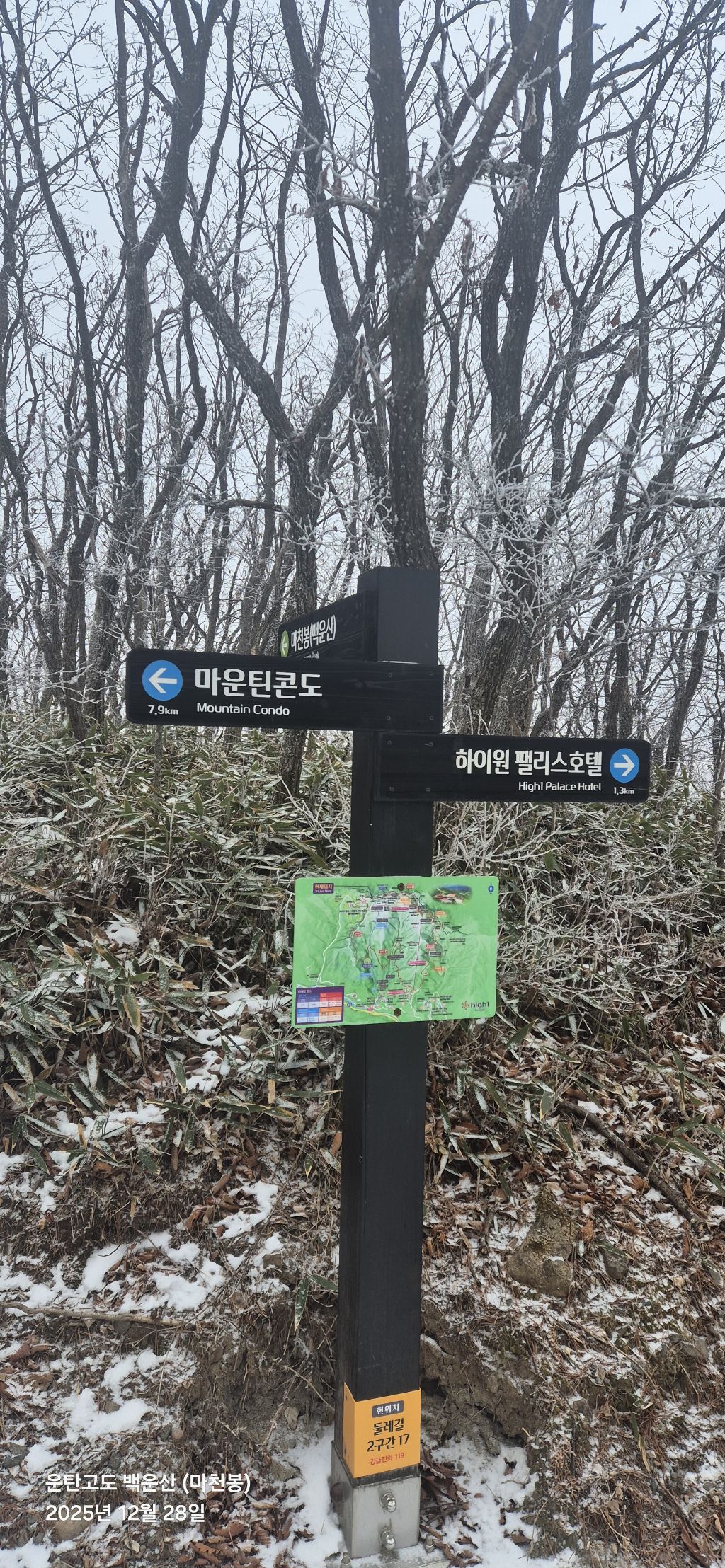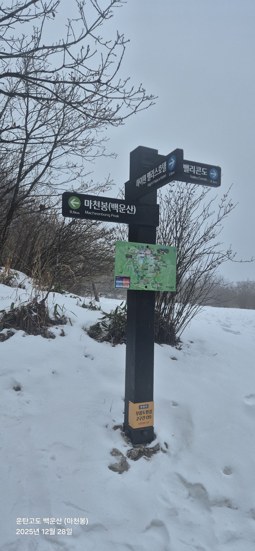 마천봉에서 뒤로돌아 밸리콘도이정표 방향으로 하산 시작