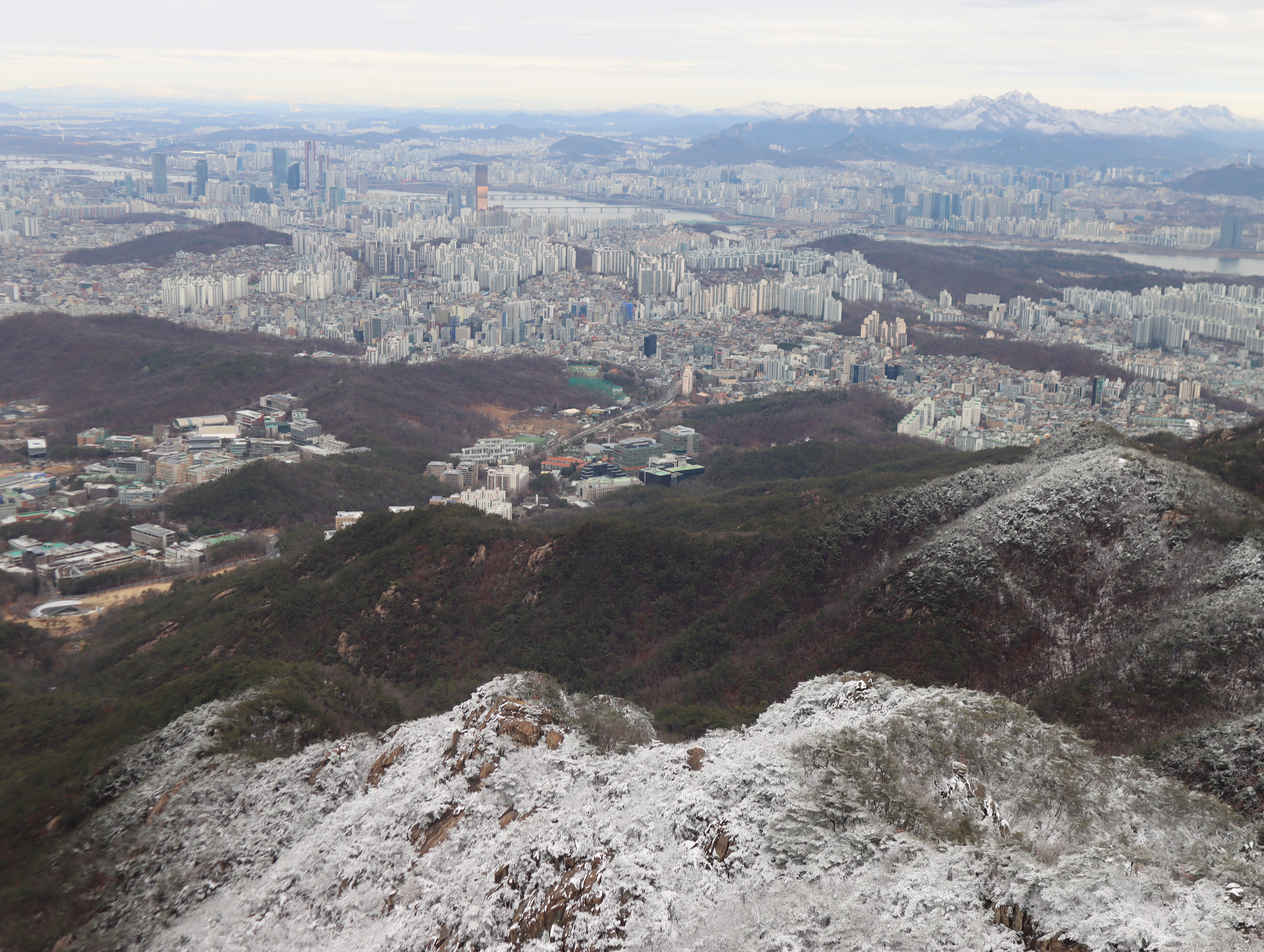 ㅇ 저~멀리 우측산이 북한산과도봉산 눈이덮힌게 보이네요.