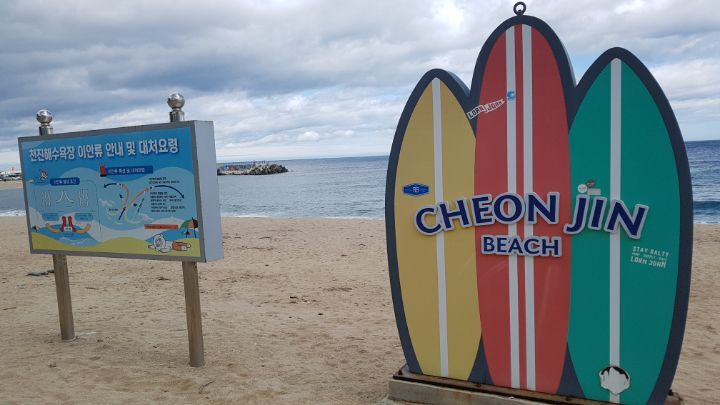 고성군 죽암면에 있는 해변이다 속초 북쪽 12km, 간성 남쪽 12km 거리에 있는 해변으로바닷가에 기암 괴석이 많고 소나무숲이 있어 주위경관이 좋다. 경사가 완만하고 수질 및 모래질이 좋으며, 조용하고 깨끗한 해수욕을 즐기기에 안성맞춤이다. 모래밭 길이200m, 폭 50m, 평균 물 깊이 1.5m 가량 된다.