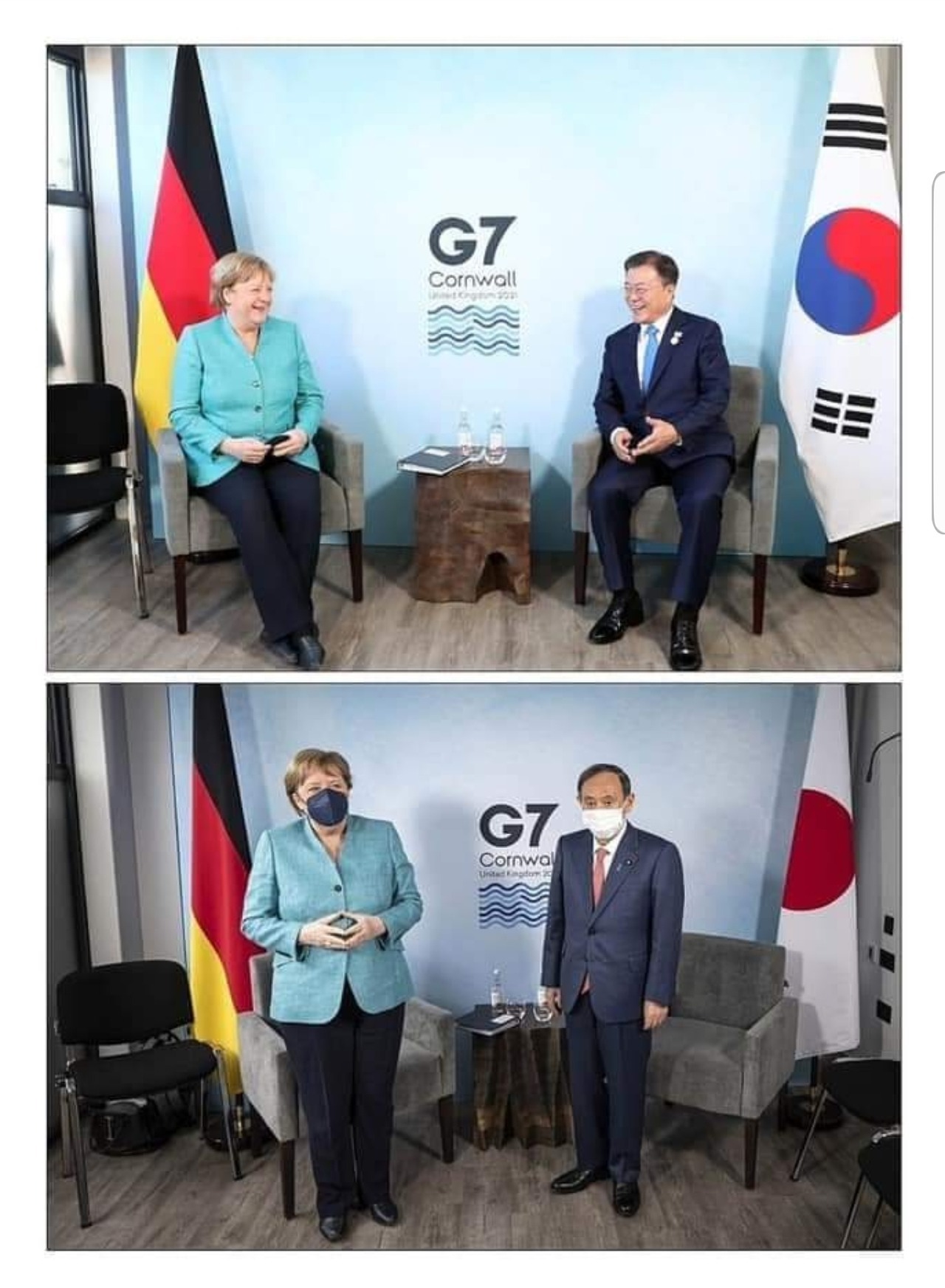 [펌] "사진 한 장으로 보는 대한민국의 위상".. G7 언론 보도 차이 '독일언론은 스가를 자르고,한국 언론은 자국 대통령을 자르