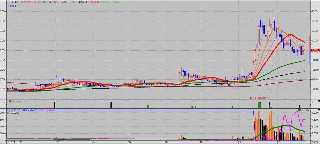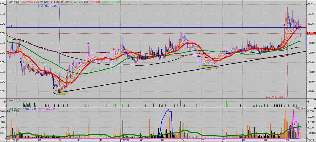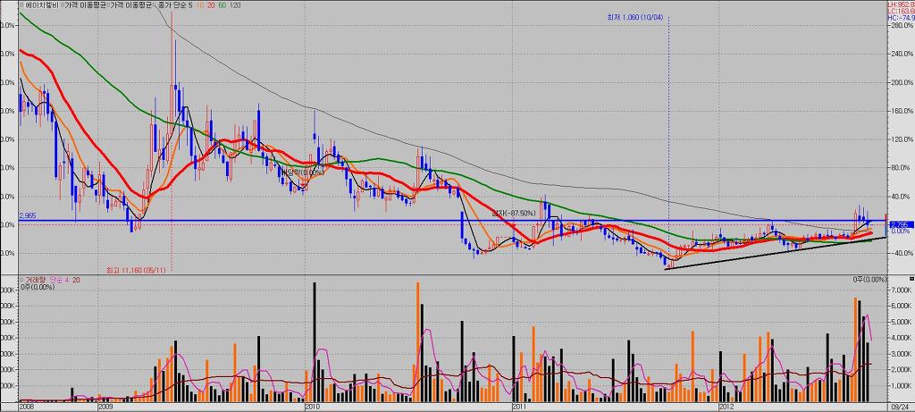 주가는 완전 바닥권에서 올라서는 모습이지만, 내부적인 악재가 숨어 있을수도 있는 모습
