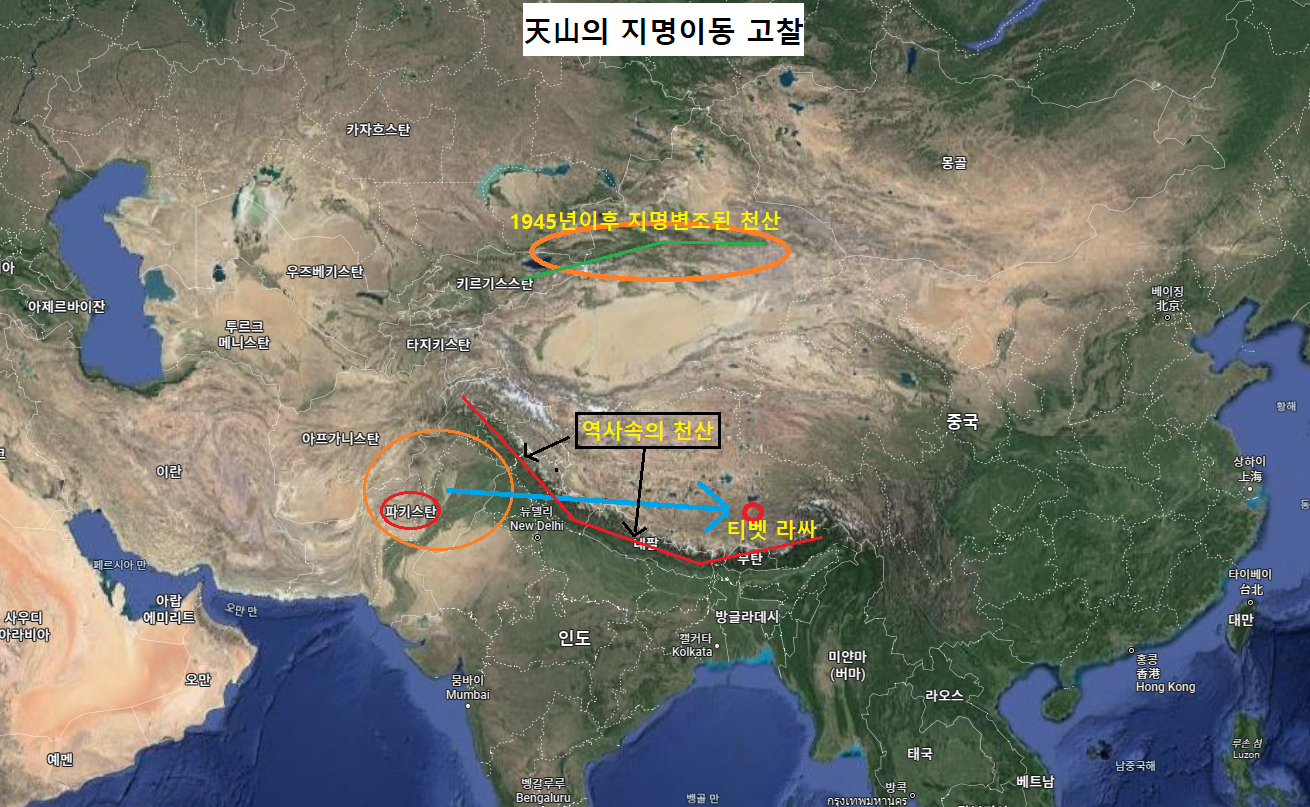 위 내용을 보면 현 천산(天山)의 위치에 맞춰져 기술되었음을 알 수 있다. 즉 중국고금지명대사전은 현재의 강역을 역사속의 강역으로 확정짓기 위해 중국공산당이 만든 위서(僞書) 즉 가짜 책이라는 말이다. 이 책을 길잡이로 삼고 대륙조선(大陸朝鮮)의 강역을 연구하는 한 천년이 지나도 올바른 그 자취를 알아낼 도리가 없을 뿐이다.