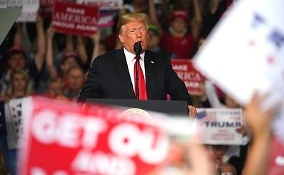 中間選挙前の最終盤となった共和党の集会で演説するトランプ大統領=2018年11月4日、ジョージア州メイコン たしかに、たとえば日本では、尖閣諸島のような領土問題が起きると、ナショナリズムが盛り上がるように見える。その一方で、米軍基地問題では、同じ沖縄県の重い負担を少しでも引き受けてやわらげるために、ほかの地方が次々と手を挙げているわけではない。苦境にある同胞を助けなければという機運はほとんどない。