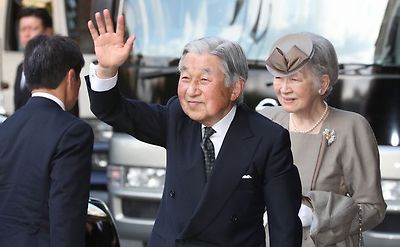 沖縄を訪問し、ホテルで出迎えの人たちに手を振る上皇、上皇后=2018年3月27日、那覇市内ナショナリズムが病んで衰弱し発熱している
