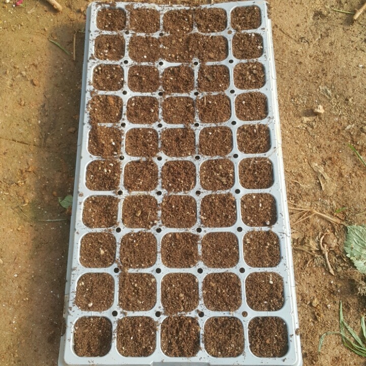 트레이 에 상토를넣고 물을 뿌려놓는다.