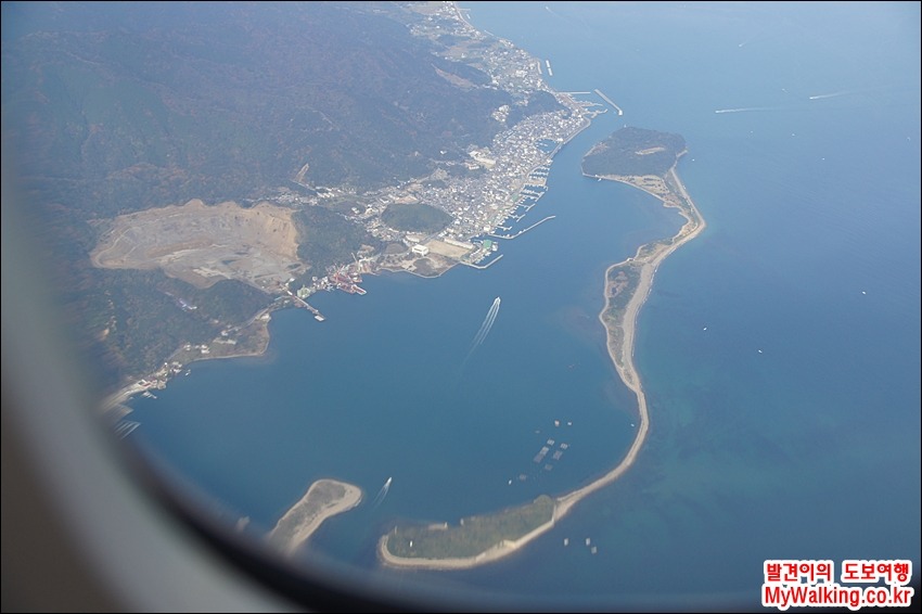 대한민국의 울릉도 상공을 통과한 후 비행기는 남동쪽으로 기수를 꺾어 남하하기 시작합니다.