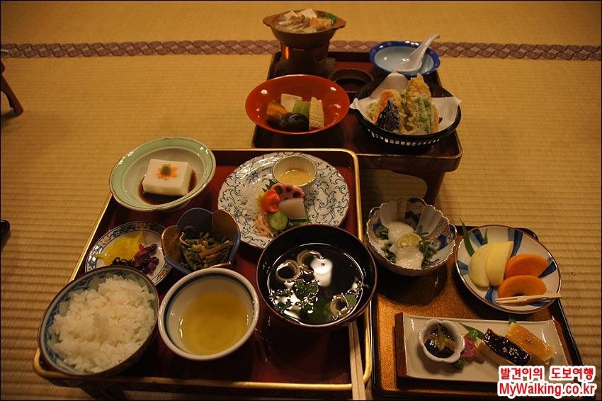 일반적인 료칸음식과 조금 다른 것은 모든 음식이 한꺼번에 세팅된다는 것이며,