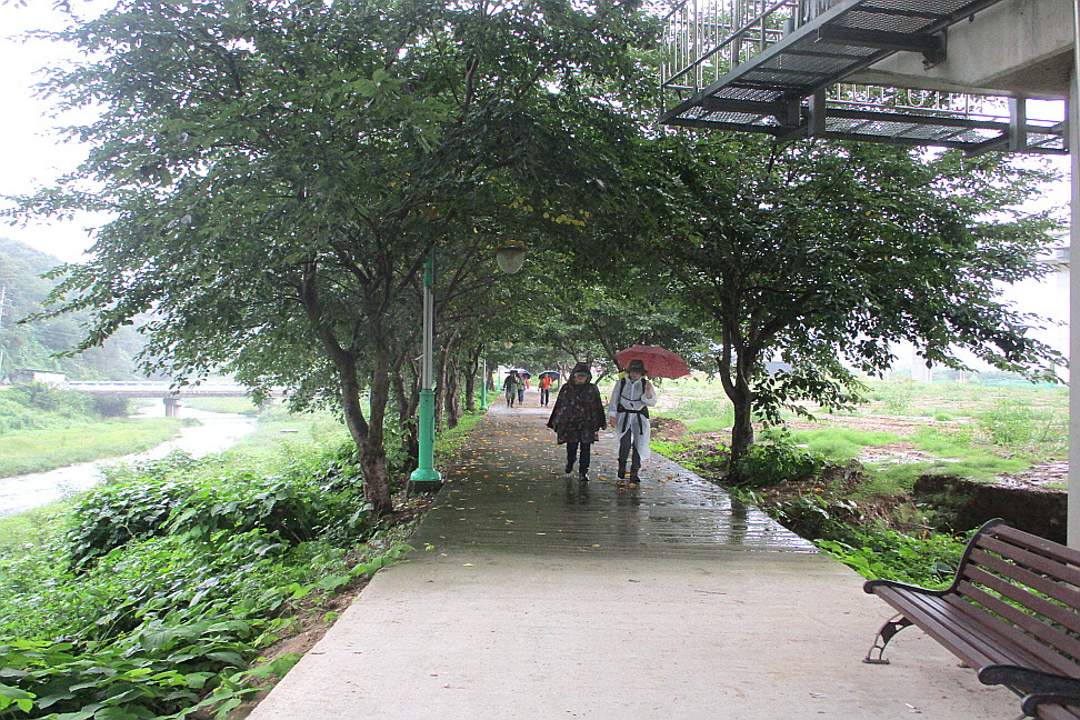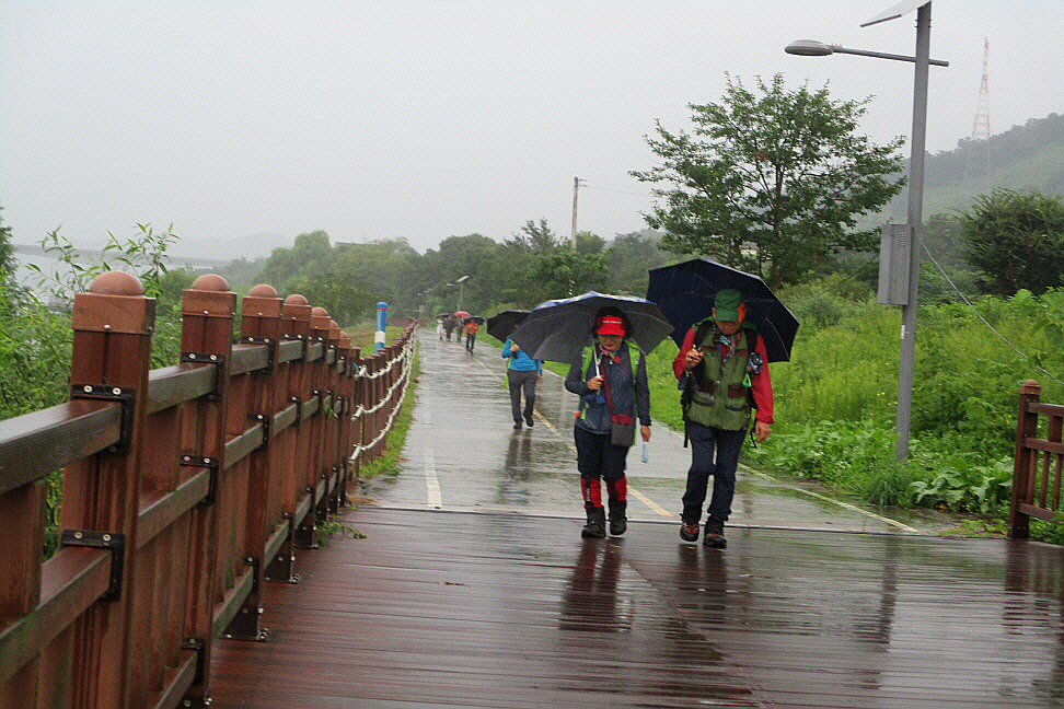 비가 많이 오는 관계로 하천변을 피해 제방길을 걸어 양평역에 도착해 오늘 일정을 마무리 합니다.