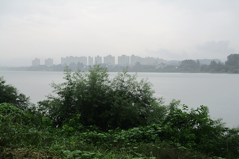 강변에 들어서니 본격적인 장대비가 퍼붓기 시작해 옷도젓고 신발까지 젓었지만 각오하고