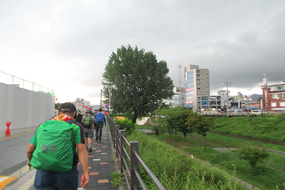 오전 산을넘는 구간까지는 비가 안오고 습해서 땀도 많이 흘렸는데 점심을 먹으려 옥천냉면마을에
