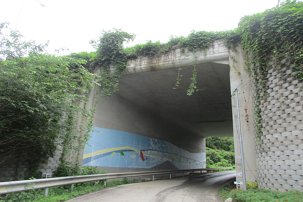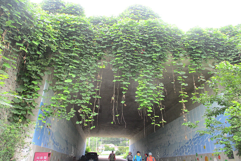 아신교 아래로 칡넝쿨이 치렁치렁 늘어져 있고