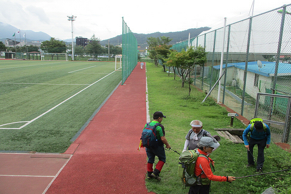 잠시후 옥천면 체육공원으로 내려와 오늘 산길 마무리. 사탄천 건너 옥천 냉면마을에서 점심을...
