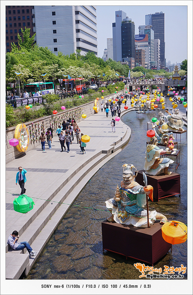 청계천 난간 사이에도 오색가로연등이 매달린다고 하네요.