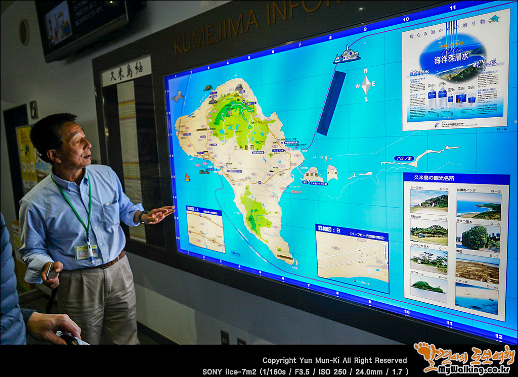 구메지마에 대한 기본적인 설명을 가이드를 맡은 제일교포2세 김성국 님께서 해주십니다.