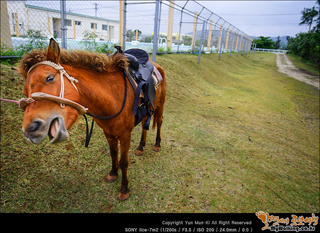 오키나와의 전통말인 요나구리 승마체험을 하러 왔습니다.