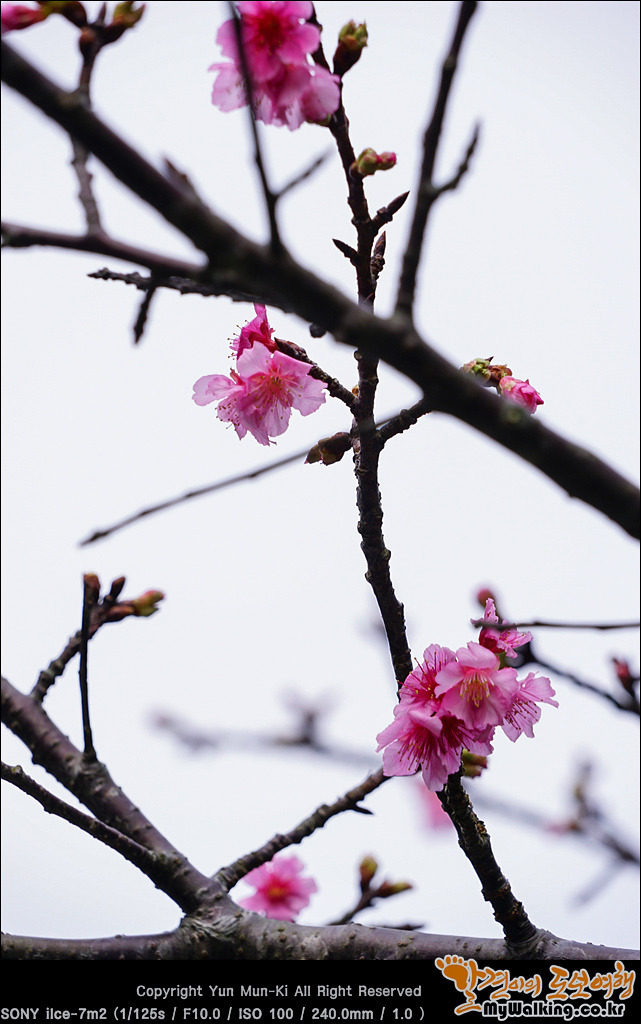 그래도 일찌감치 세상에 나온 구메지마 벚꽃 몇 송이를 카메라에 담을 수 있어 좋았습니다.