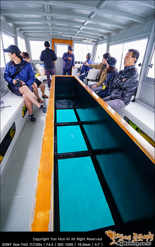 배 밑창이 투명한 글라스 보트에 타고 출발합니다.