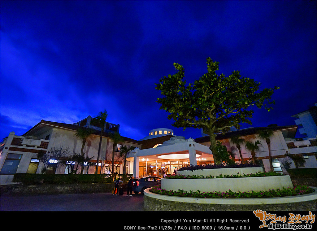 어둑해져서 우리 일행이 4일간 베이스캠프로 머물 '리조트 호텔 구메 아일랜드'에 들었습니다.