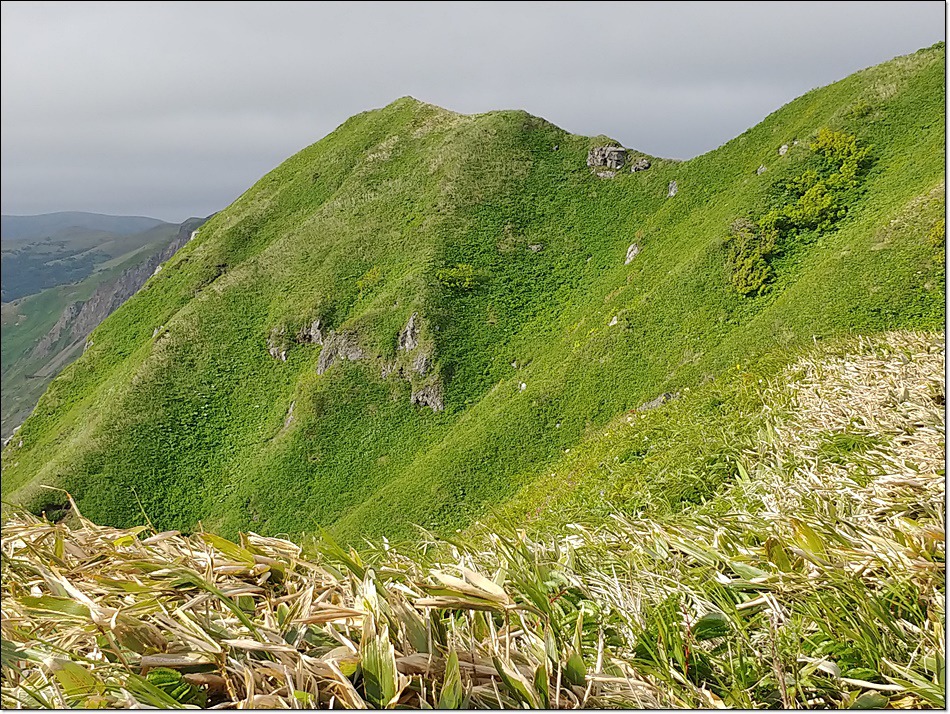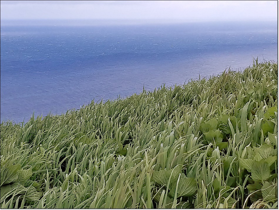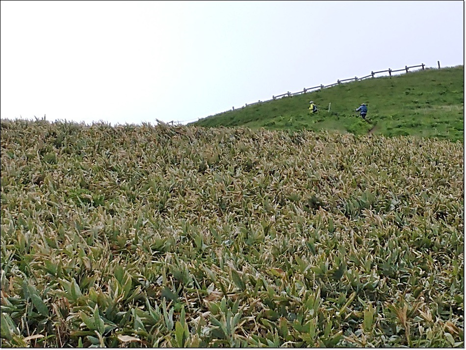 한쪽은 거센 바람에 촘촘히 서로를 의지하는 강한 조릿대의 벌판~~