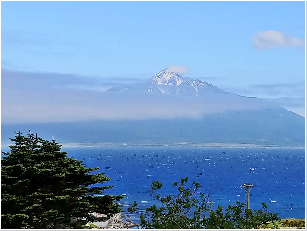 리시리섬을 한바퀴 온전히 돌아도 보지 못하던 산이였는데, 멀리 레분섬에서 그 자태를 만나게 됩니다.