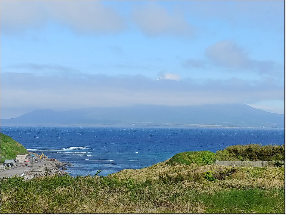 그리고, 햇살에 빛나는 짙푸른 바다 너머에는 보일듯 말듯 리시리산이 멋지게 바라보고 있습니다.