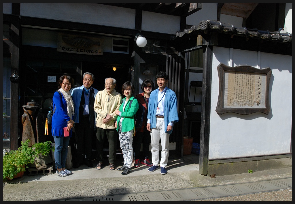 92세이신 7대 사장님, 61세이신 8대 사장니 그리고 현 사장인 20대 9대 사장님, 3대에 걸친 키야료칸 주인님 분들을 모시고 기념 촬영입니다.