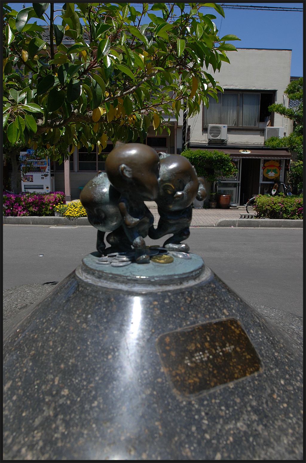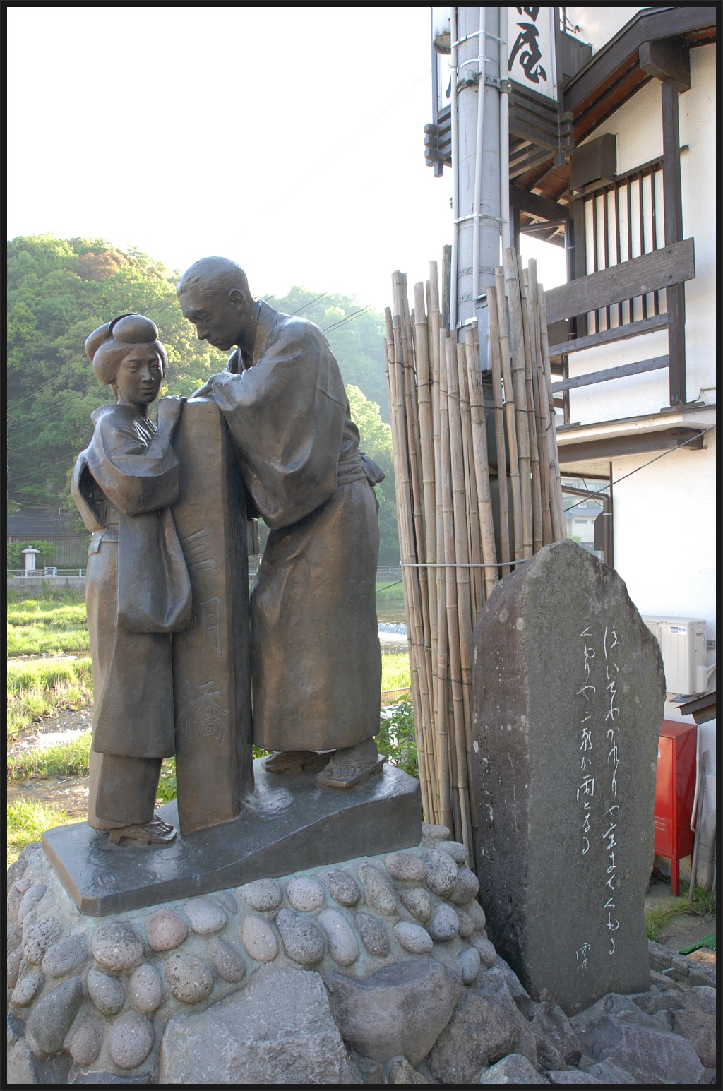 이 미사사 다리옆엔 무성영화 (미사사 코우타)석상이 멋진 표현이 된 상태로 서 있습니다. 남자가 여자를 바라보는 눈이 비록 석상이지만 아주 그윽합니다.