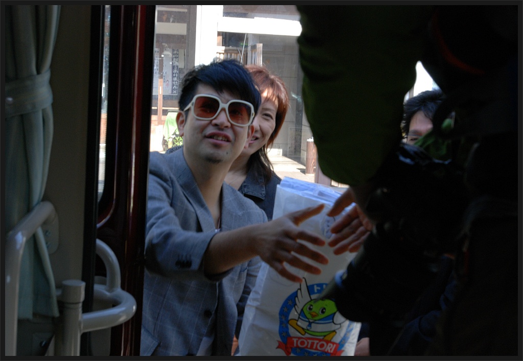 미사사를 떠날때 완전 모습이 전날과 다른 젊은 Yuichi 사무국장이 Tottori 기념 머플러 타올을 가져오셔서 선물로 주십니다.