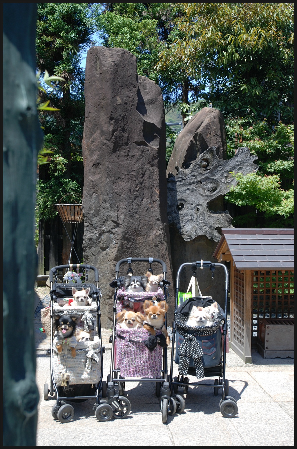 키타로 신사앞에서 어느분이 유모차에 데리고 왔나요. 웬 애완견 유모차가 이렇게 많이.