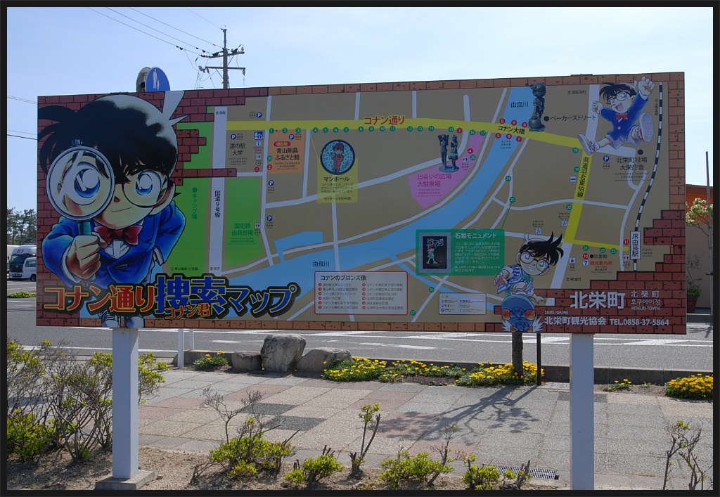 이제 귀국길에 소년탐정 코난의 작가, "고쇼 아오야미"의 고향을 코난의 테마마을로 만들고 관광객들을 불러 들이고 있습니다. 거리는 온통 코난의 이름이 붙습니다.