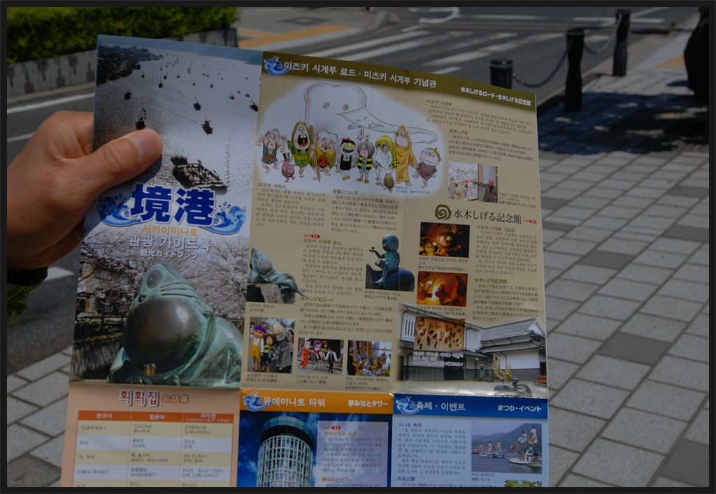 코난마을 떠나 마지막으로 .... 사카이미나툐 요괴마을로 들렀습니다. 여긴 우리나라 동해에서 여기서 가까운 다이센 산 해발 약 1710 여 m 정도.. 등산오기 위해 여기까지 국제선 페리가 다닙니다