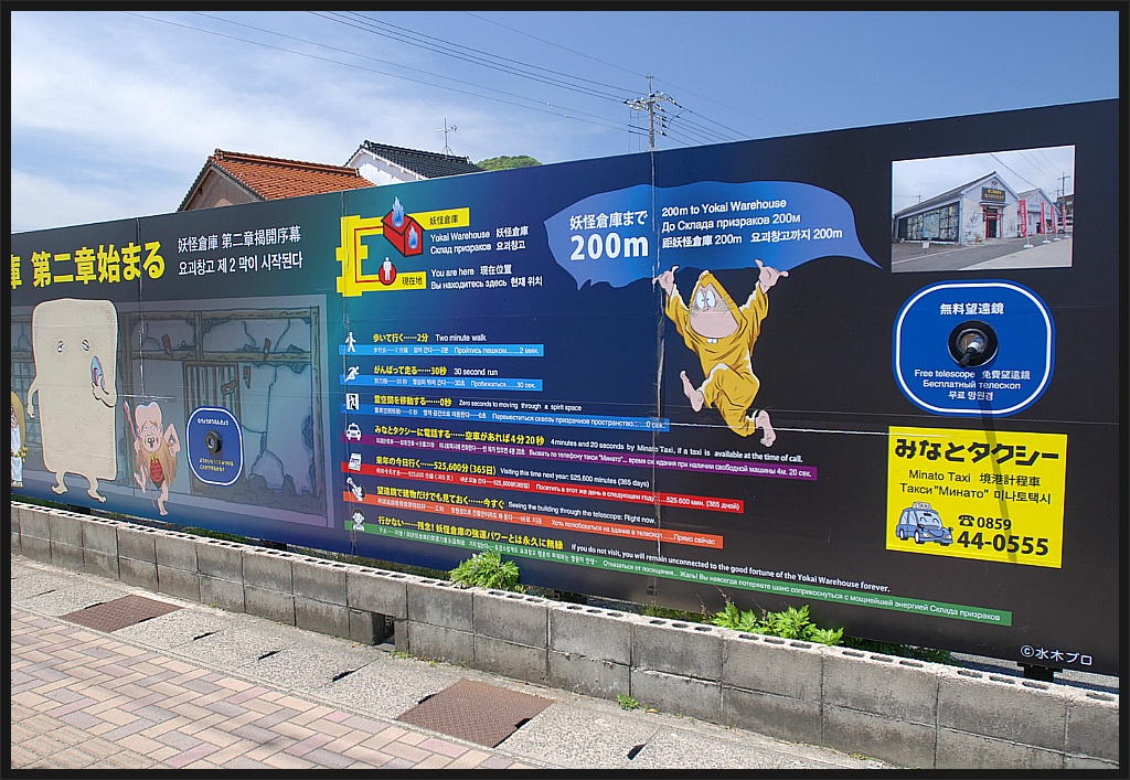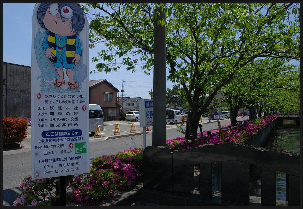 일본 요괴만화작가로 유명한 미즈키 시게루를 기념하기 위해 작가의 고향인 사카이미나토에 설치된 139개의 요괴동상의 거리인, 미즈키 시게루 Road를 산책하러 왔습니다.