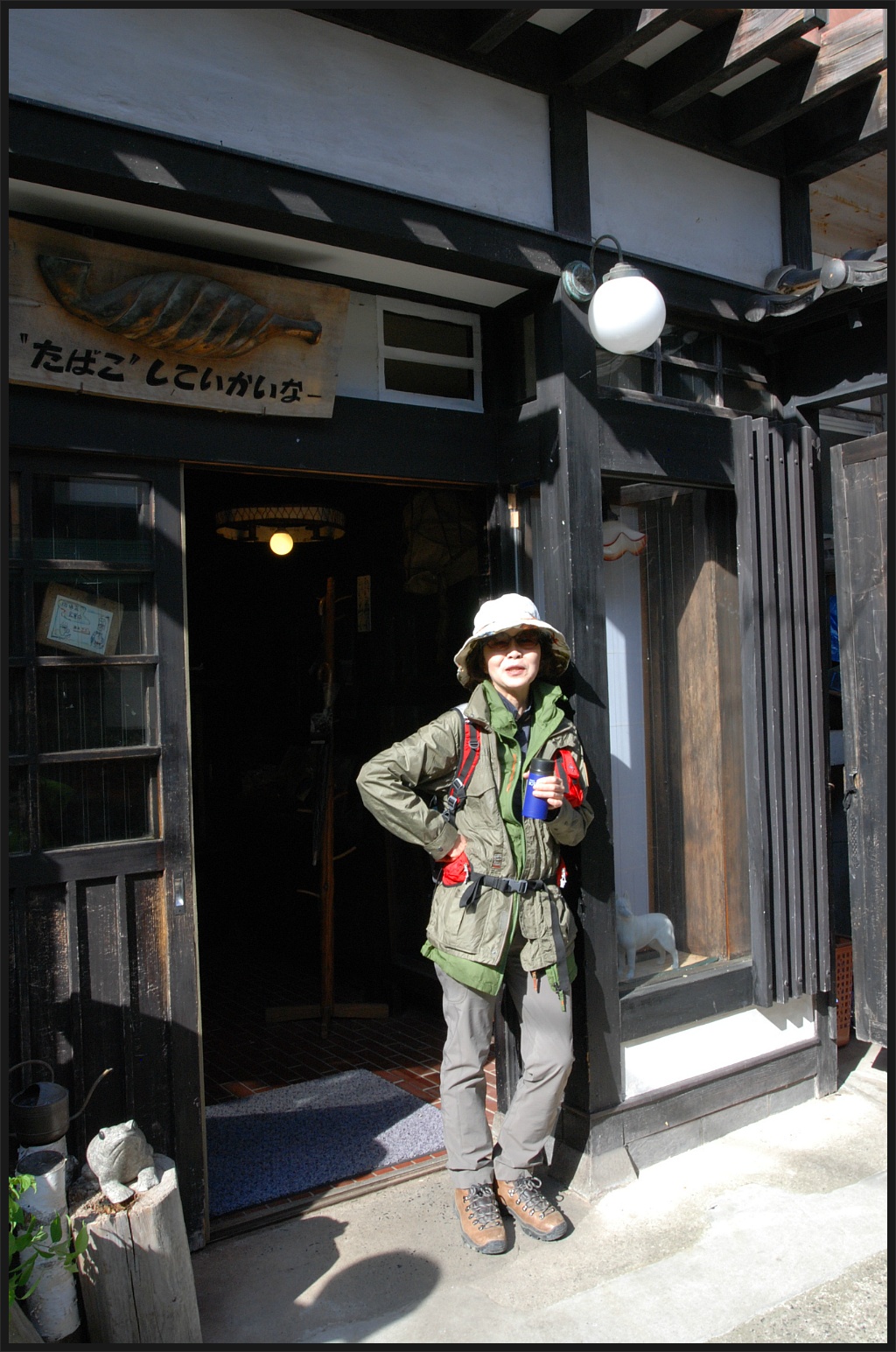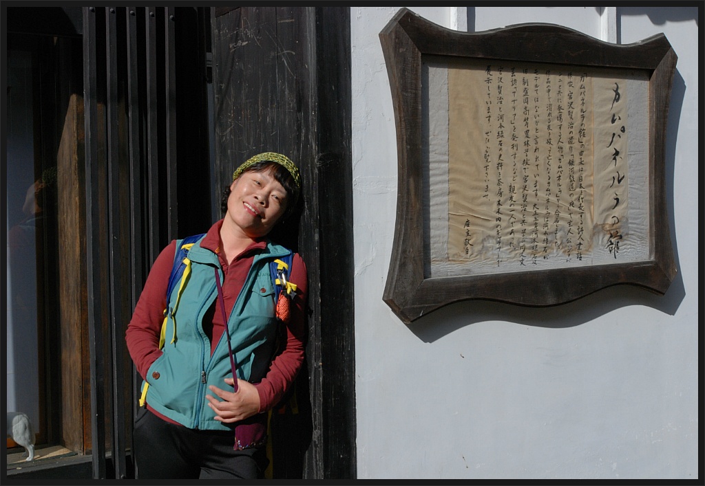 이제 아침식사 후 못내 떠남이 아쉬운 토로님이 키야료칸 주인이 경영하는 커피집 문앞에서 모양을 내어 봅니다.