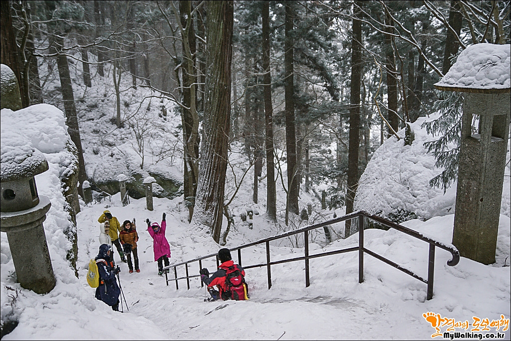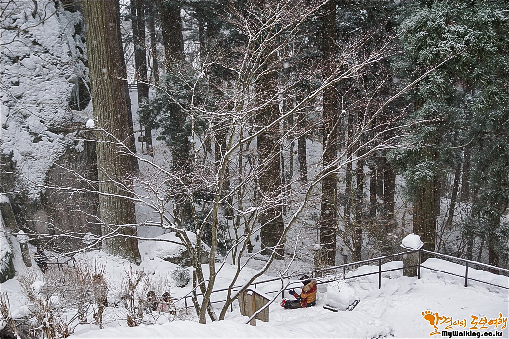 내려가는 길은 눈이 많이 내려 엉덩이 썰매를 이용하시는 분들이 더러 계시네요. ^^