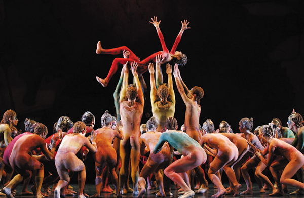 ▲ 영국 국립발레단이 선보인 ‘봄의 제전’의 한 장면입니다. ‘봄의 제전’은 원시적이고 야만적인 리듬과 음산하고 공포스러운 분위기가 특징이에요. /게티이미지코리아