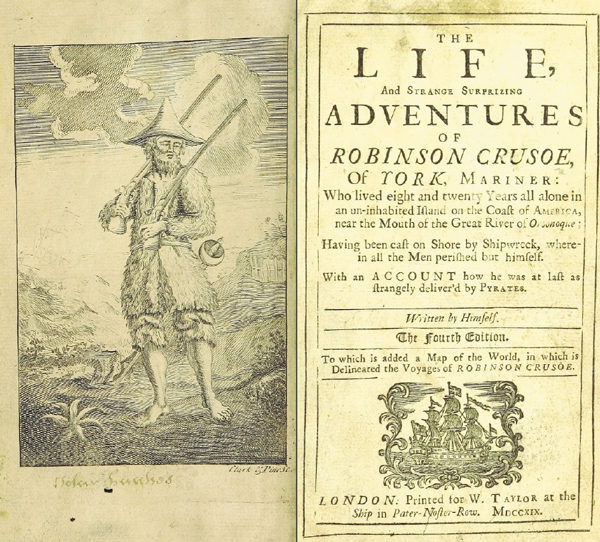 ▲ 1719년 출판된‘로빈슨크루소’의 표지. /위키피디아