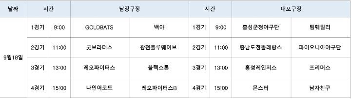 9월 3주차 경기일정 작성자지민구(경기이사)|작성시간22.09.13|조회수34 목록 댓글 0 글자크기 작게가 글자크기 크게가 다음검색 현재 게시글 추가 기능 열기 북마크 공유하기 신고 센터로 신고 댓글 댓글 0 댓글쓰기 답글쓰기 댓글 리스트