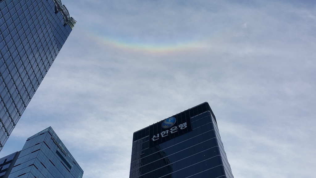집회에 참여하신 분들이 맑은 하늘의 무지개를 올려다 보면서 좋은 방향으로 의미를 부여하는 것을 보았습니다.