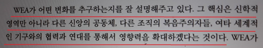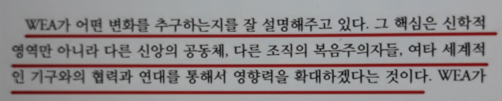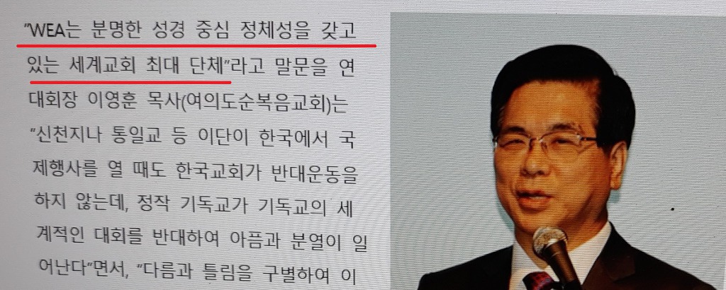 "WEA는 분명한 성경 중심 정체성을 갖고 있는 세계최대 단체" 라고 하고 있으니