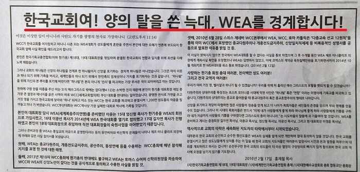 합동교단과 한기총은 WEA에 걸려들었거나