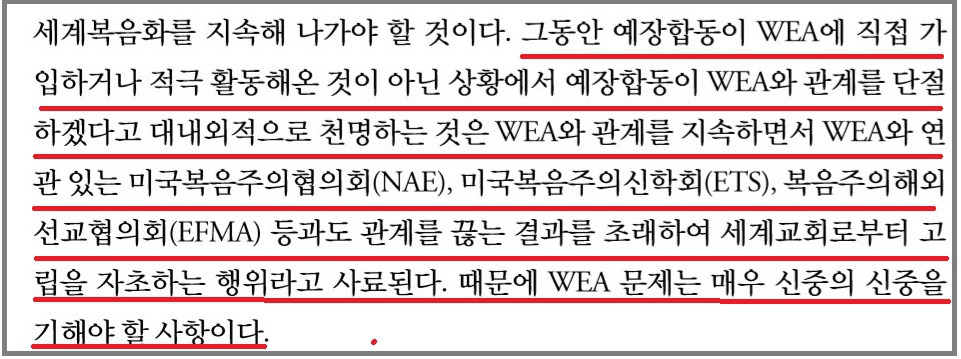합동교단이 WEA에서 벗어나지 못한다는 점이다.