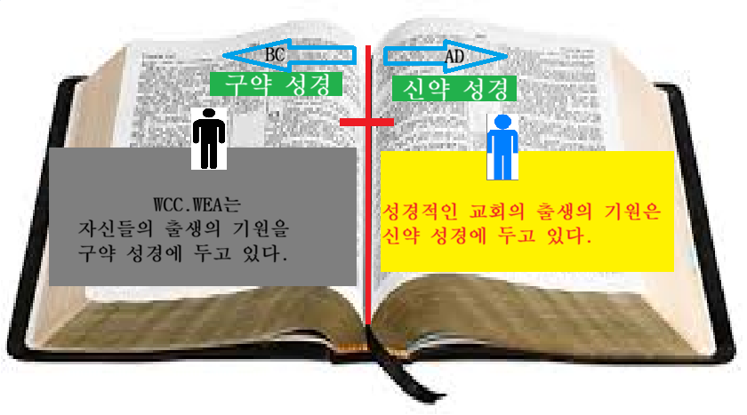 WCC.WEA는 이 세상 창조시에 하나님으로 부터 지으심을 받은 아담으로 말미암은 사람이기에 출생의 기원을 구약 성경에 두고 있고 성경적인 교회의 출생은 구 언약으로 출생한 이삭으로 말미암은 하나님의 저녀 이스라엘을 폐하시고 세우신 새 언약으로 출생한 하나님의 자녀이기에 출생의 기원과 내력을 신약 성경에 두고 있다. WCC.WEA 만큼 무서운 대적은 없다 하리라.