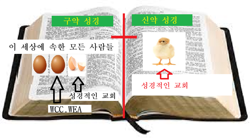 이 같은 WCC.WEA 사상에 영향을 받은 연고로 예수님을 믿는다는 우리 교회가 그만 이 세상 창조시에 하나님으로 부터 지으심을 받은 아담으로 말미암은 사람이 되어 버린 것이 우리 한국교회가 비 성경적인 WCC.WEA의 사상에 영향을 받은 결과이다. 정신을 바짝 차리자. 예수님을 믿는다는 우리 교회는 이 세상 창조시에 하나님으로 부터 지으심을 받은 아담으로 말미암은 그 사람이 아님을 알자.