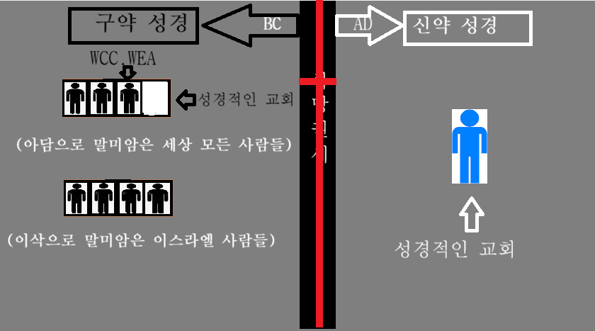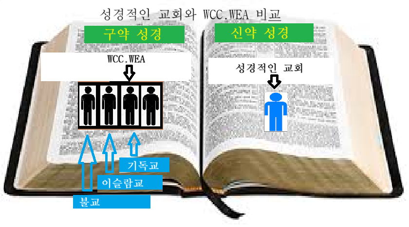그렇다면 WCC.WEA의 문제는 무엇인가? 이 세상 창조시에 하나님으로 부터 지으심을 받은 아담으로 말미암은 사람이라는 점이다. 이 세상 창조시에 하나님으로 부터 지으심을 받은 아담으로 말미암은 사람은 구약 성경에 속한 사람이다. 구약 성경에 속한 사람들이 구약 성경과 신약 성경을 넘나들며 성경적인 용어를 사용하고 성경에 기록된 교리와 내용을 인용하기에 어떤 문제가 없어 보이지만 WCC.WEA는 이 세상에 속한 모든 사람들과 같이 구약 성경에 기록된 사람들로서